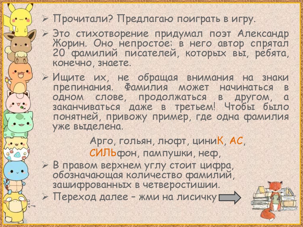 Прочитали? Предлагаю поиграть в игру.Это стихотворение придумал поэт Александр