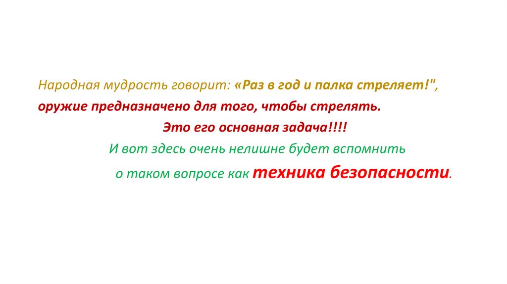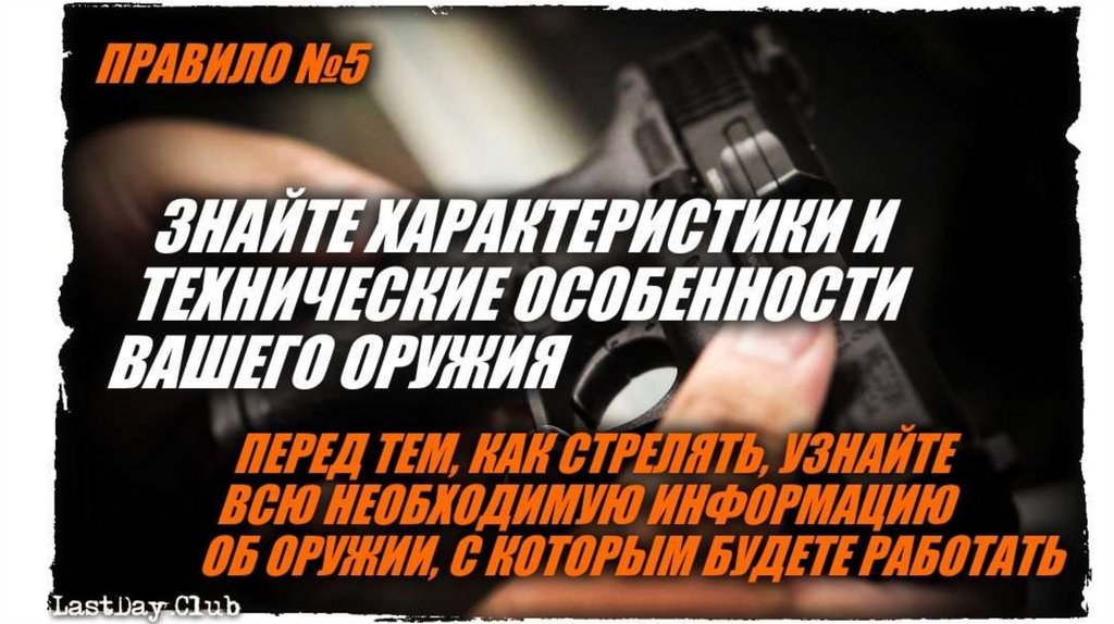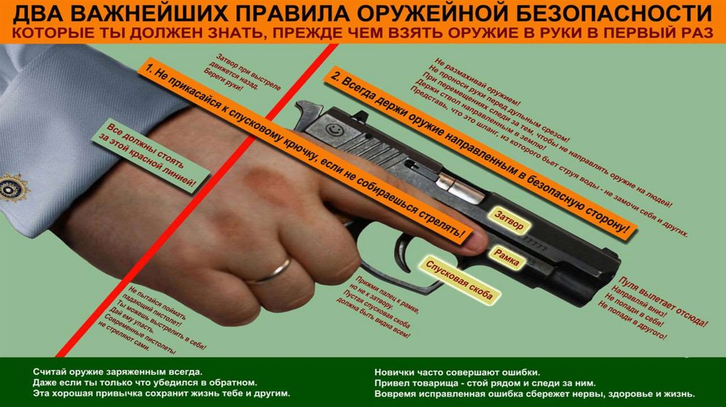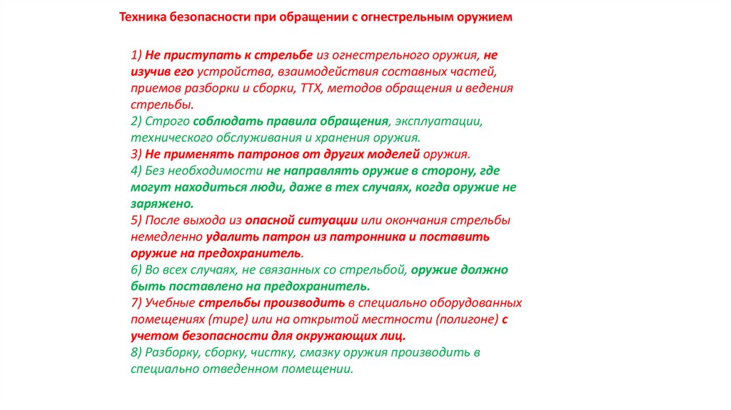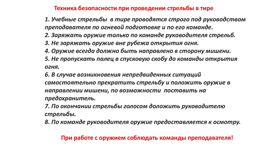 Техника безопасности при обращении с огнестрельным оружием1) Не приступать к стрельбе из огнестрельного оружия, не