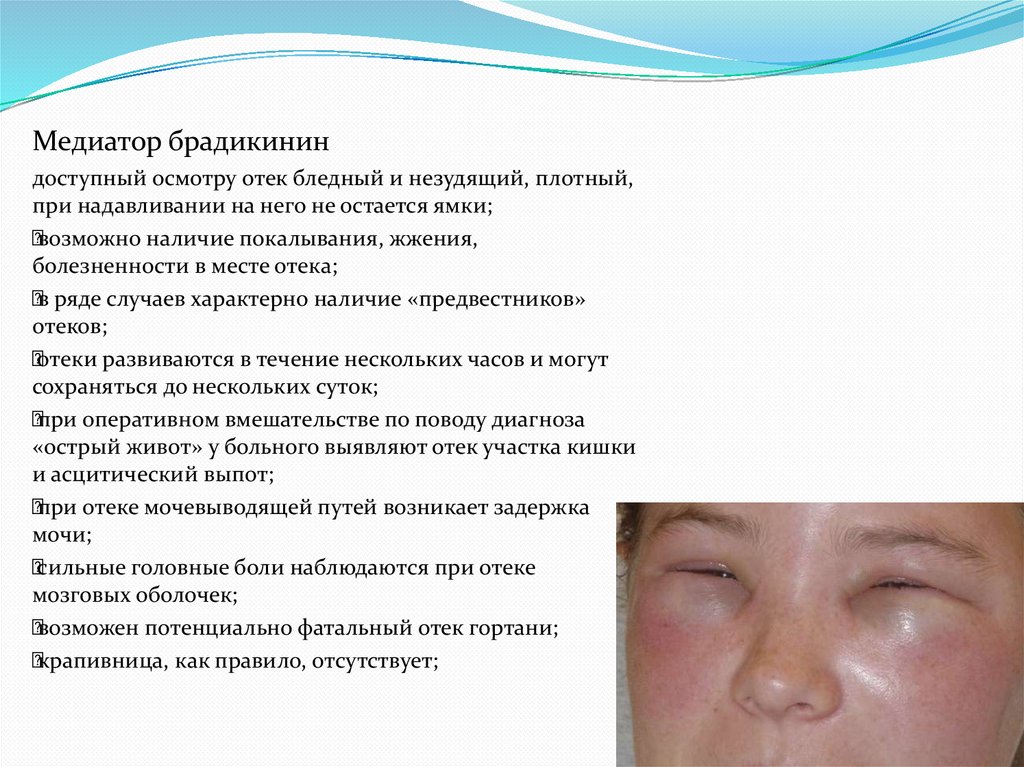 Медиатор брадикининдоступный осмотру отек бледный и незудящий, плотный,