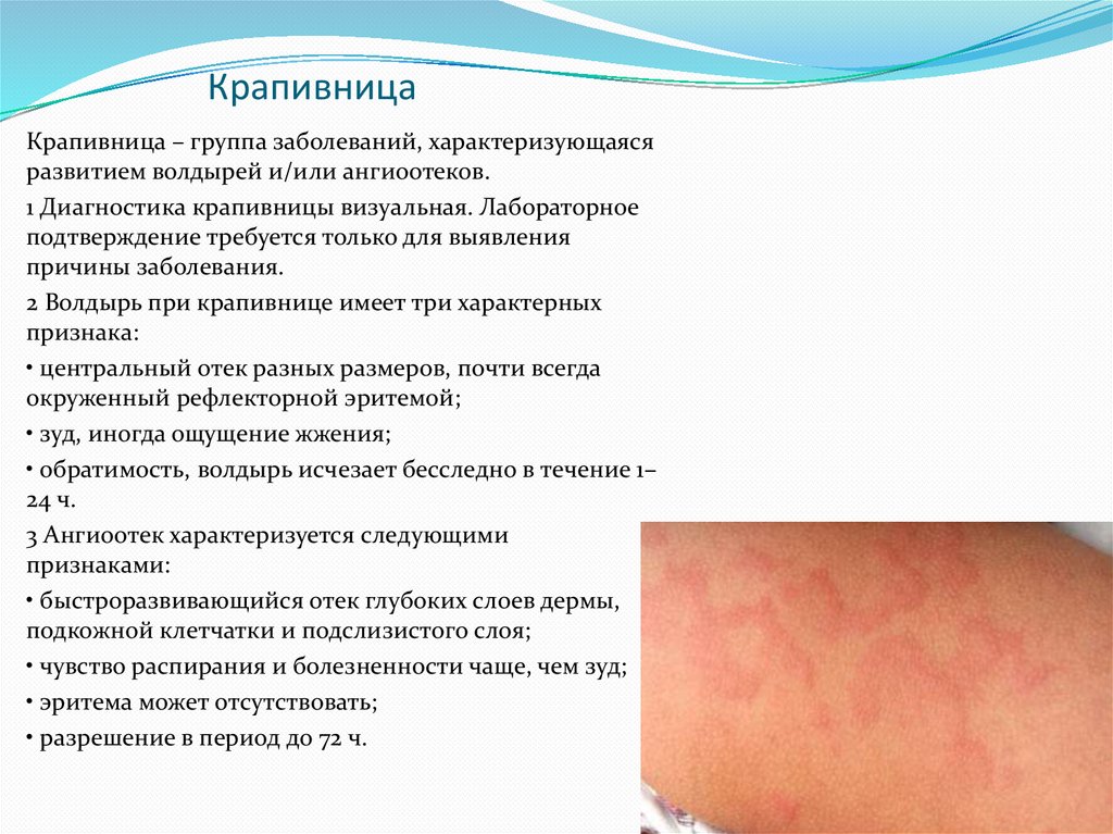 • обратимость, волдырь исчезает бесследно в течение 1–
