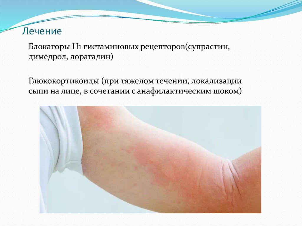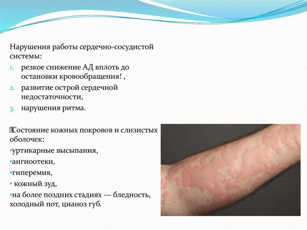сыпи на лице, в сочетании с анафилактическим шоком)