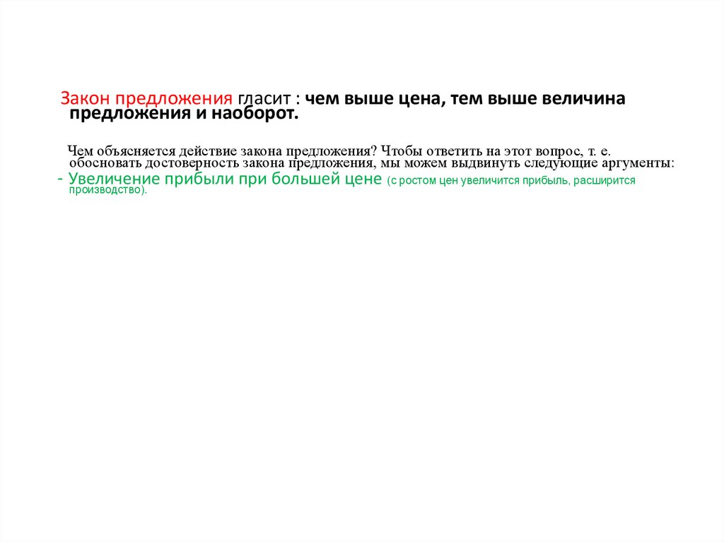 Чем объясняется действие закона предложения? Чтобы ответить на этот вопрос, т. е.