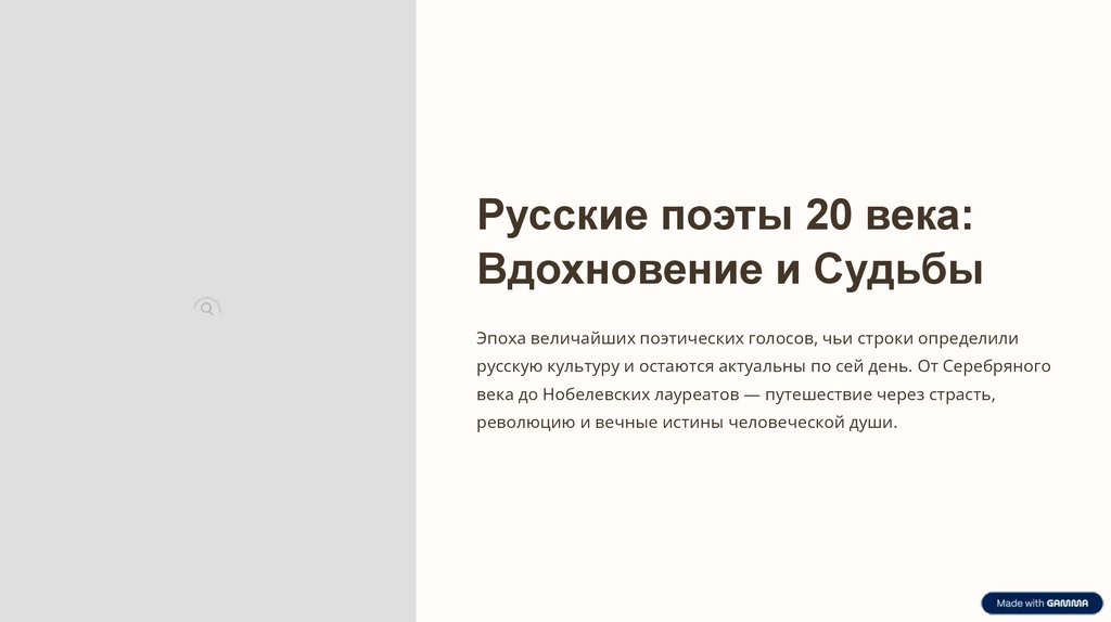 Русские поэты 20 века:Вдохновение и Судьбы