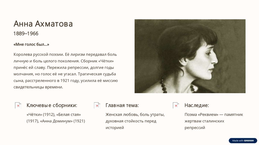 Анна Ах матова1 889–1 966