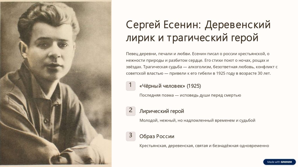 Сергей Есенин: Деревенскийлирик и трагический герой