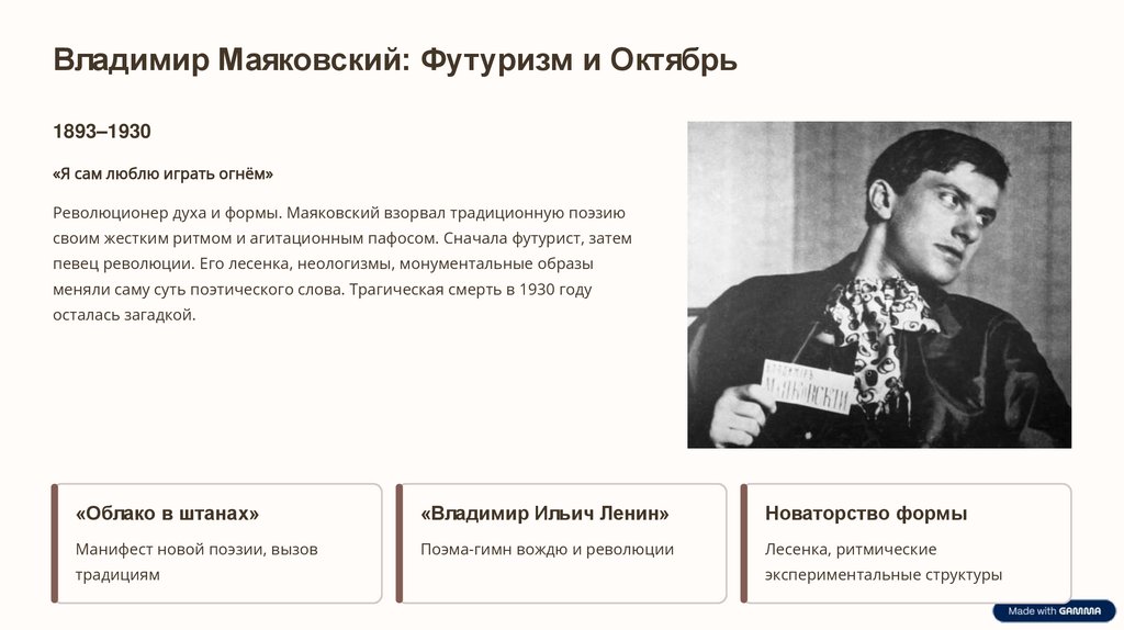 меняли саму суть поэтического слова. Трагическая смерть в 1930 году