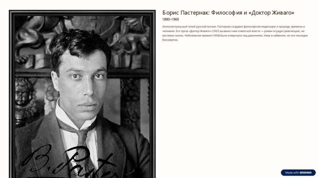 Интеллектуальный гений русской поэзии. Пастернак создавал философские медитации о природе, времени и