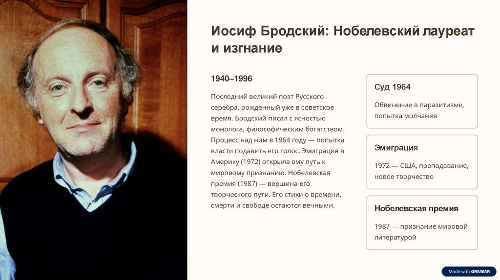 Иосиф Бродский: Нобелевский лауреати изгнание