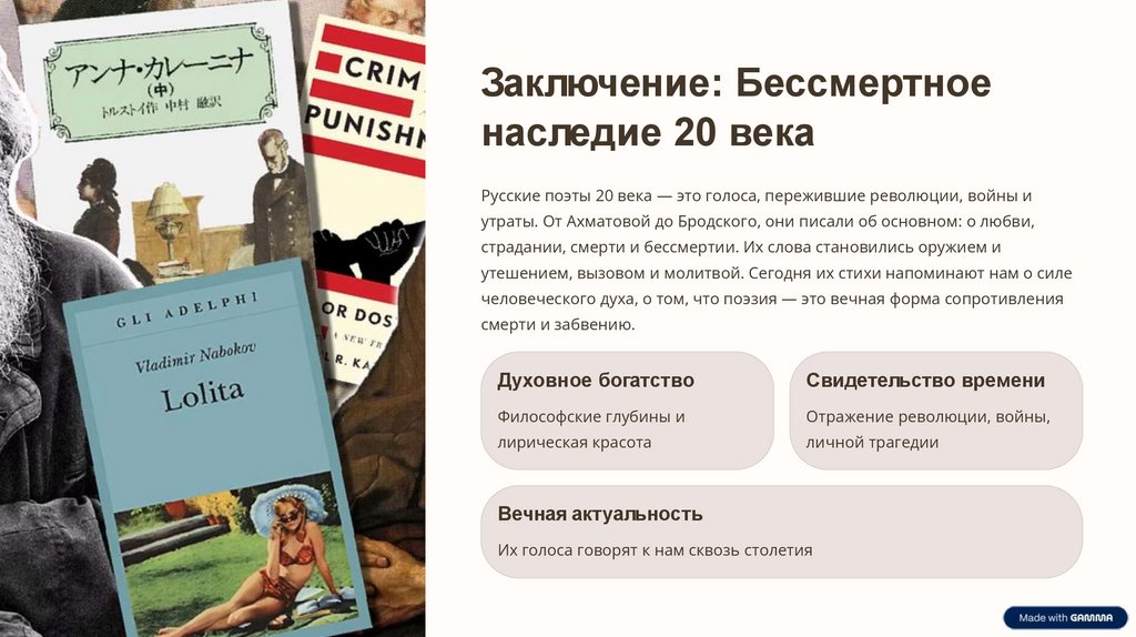 Заключение: Бессмертноенаследие 20 века