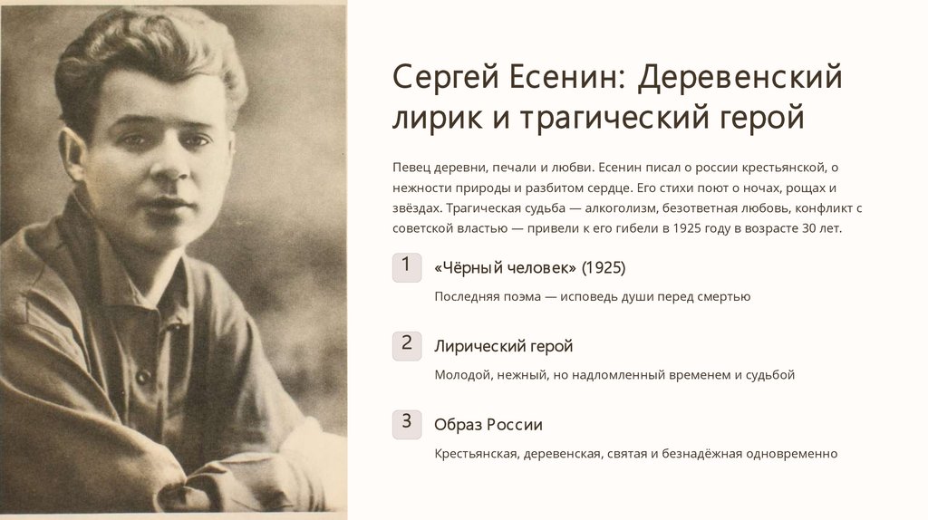 Сергей Есенин: Деревенскийлирик и трагический герой