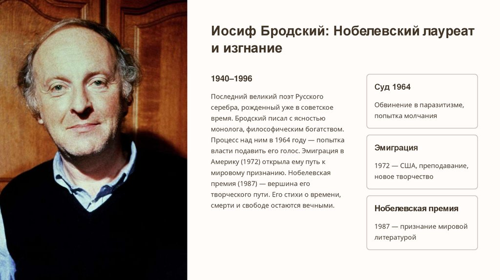 Иосиф Бродский: Нобелевский лауреати изгнание