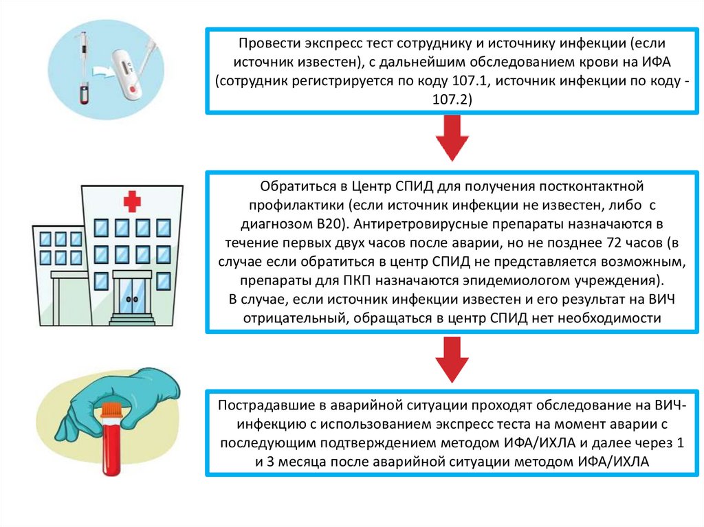 Пострадавшие в аварийной ситуации проходят обследование на ВИЧинфекцию с использованием экспресс теста на момент аварии с