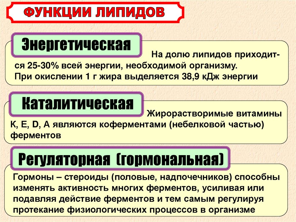 ЭнергетическаяНа долю липидов приходится 25-30% всей энергии, необходимой организму.