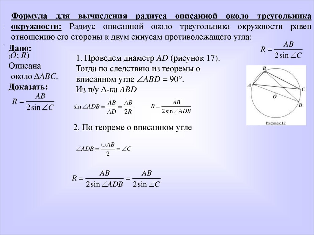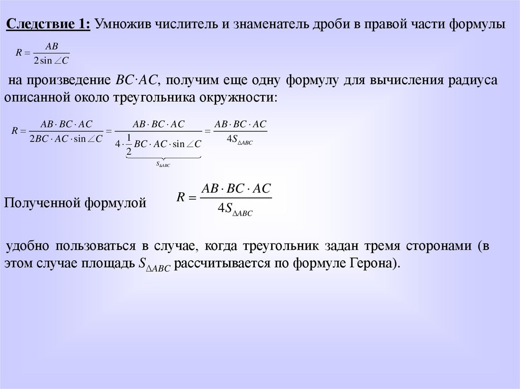 на произведение BC·AC, получим еще одну формулу для вычисления радиуса