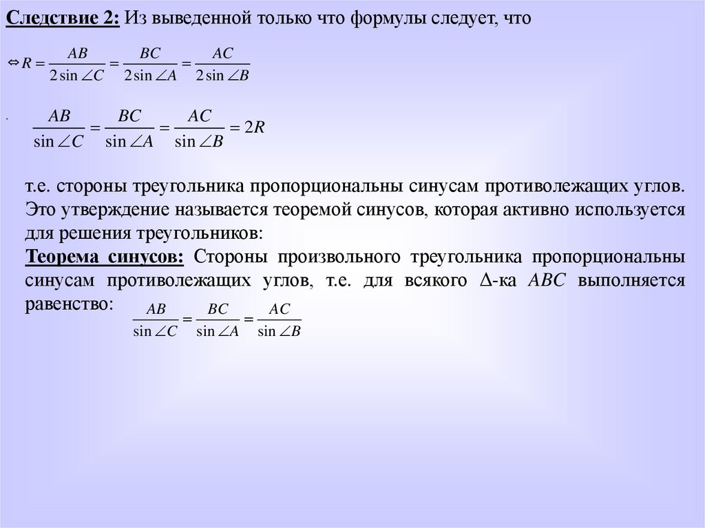 Теорема синусов: Стороны произвольного треугольника пропорциональны