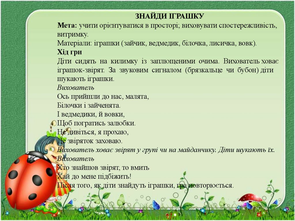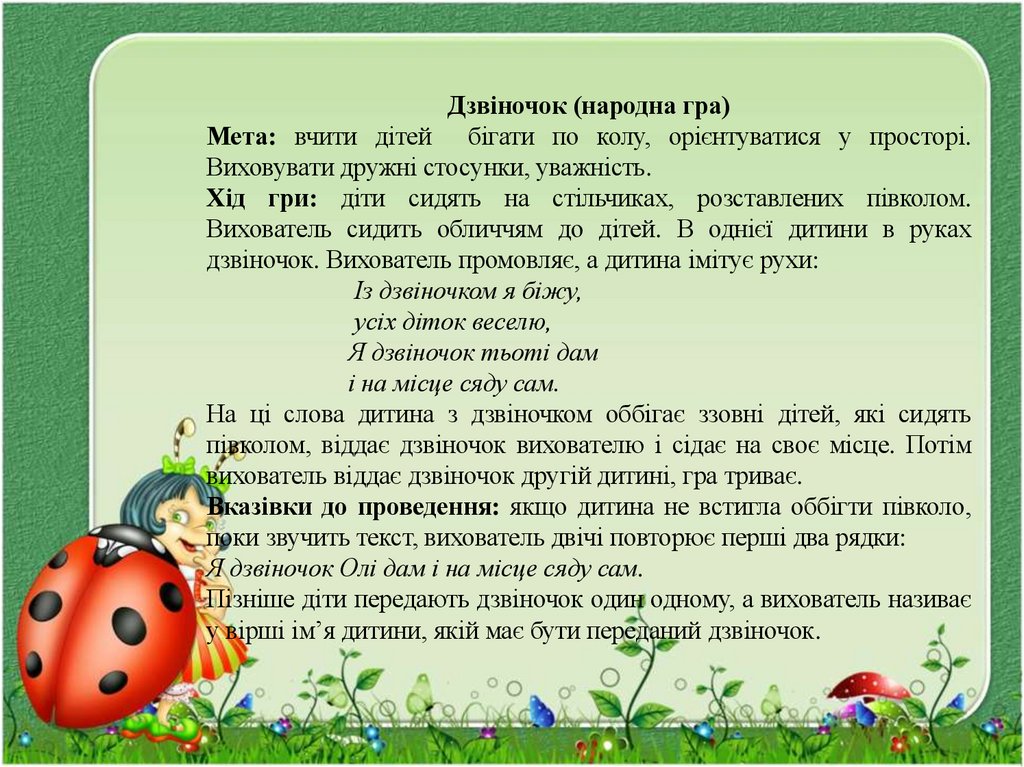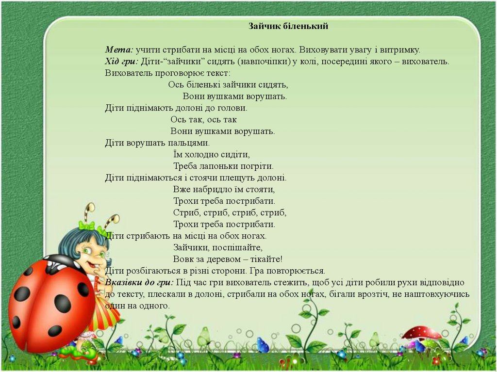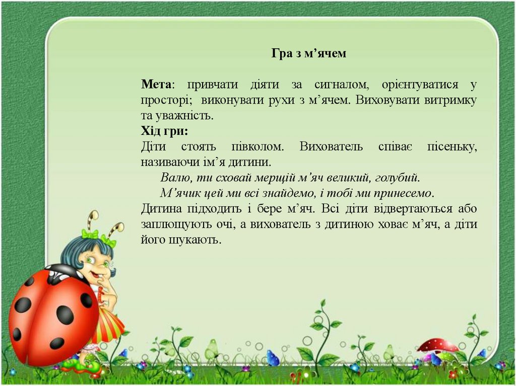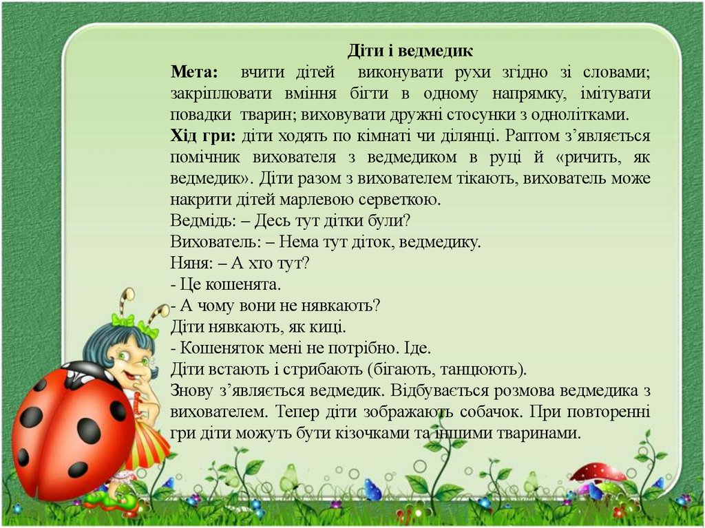 призначена вихователем. Коли діти вимовлять усі слова, ведучий