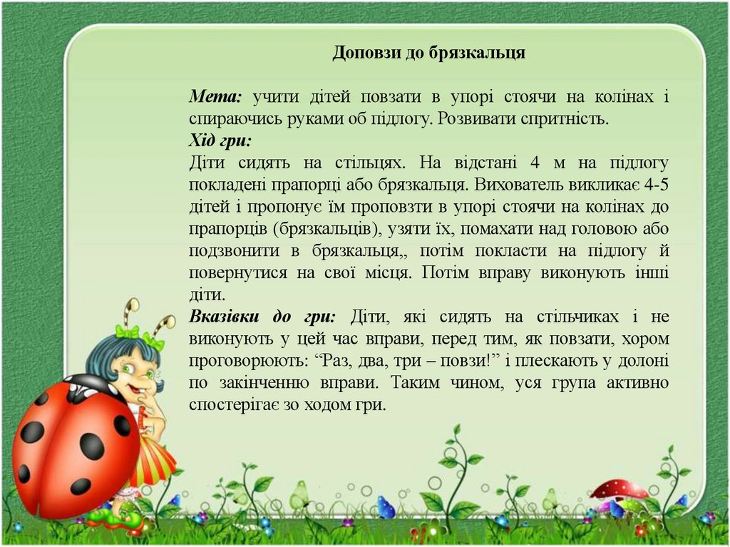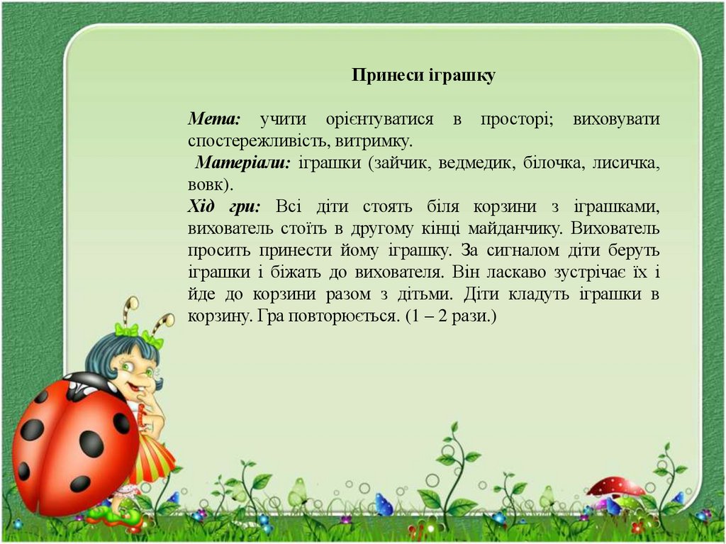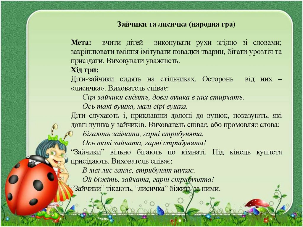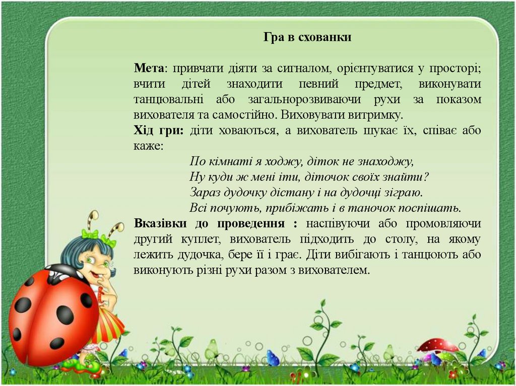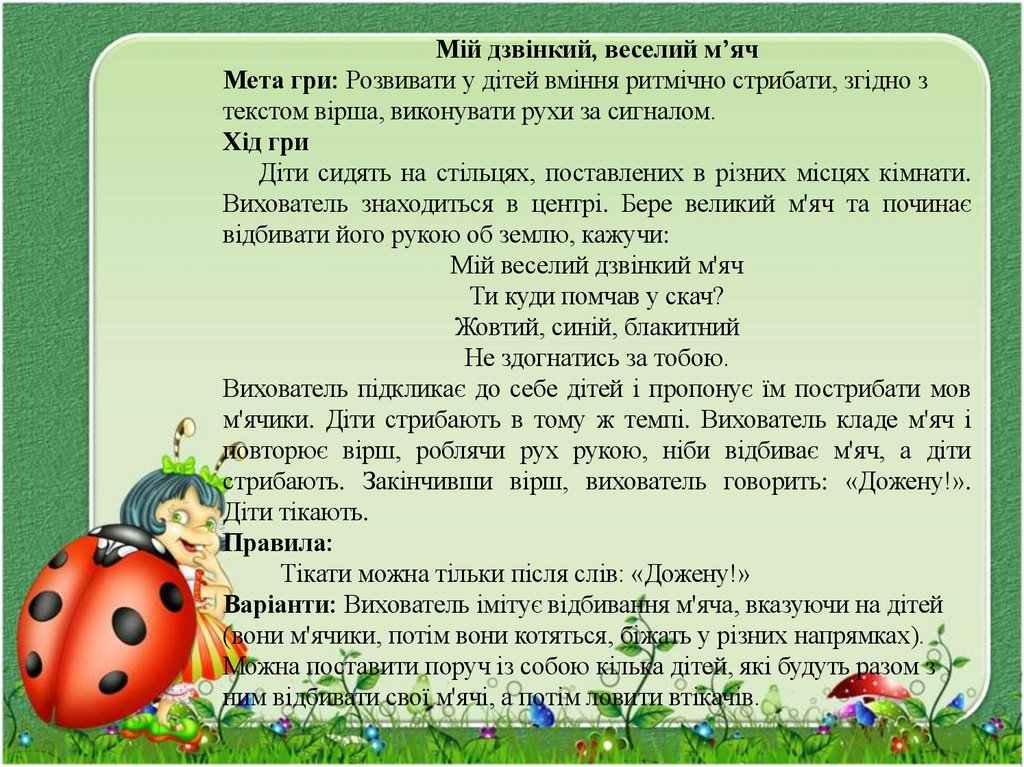 призначена вихователем. Коли діти вимовлять усі слова, ведучий