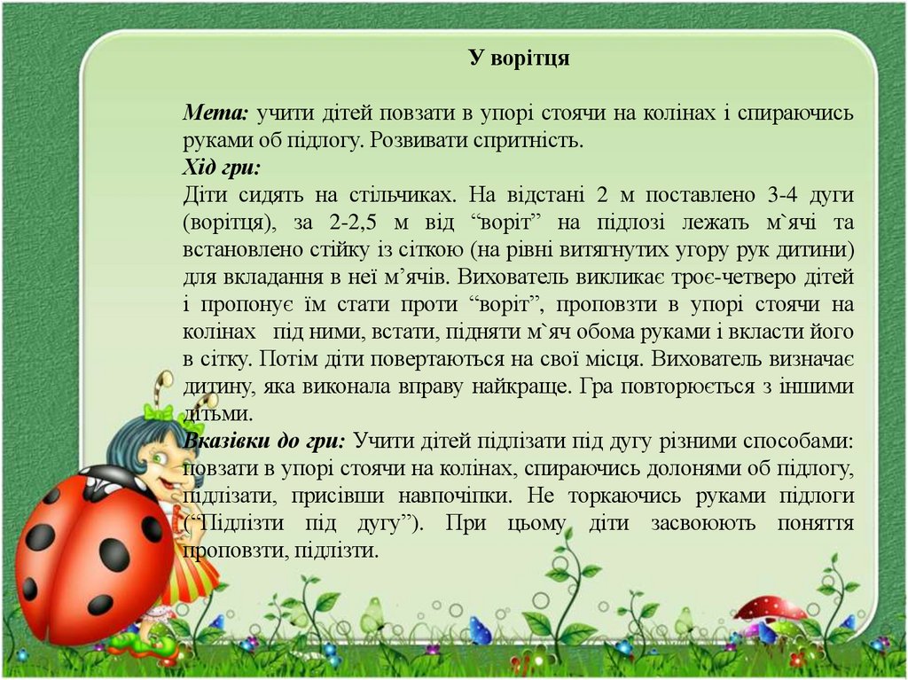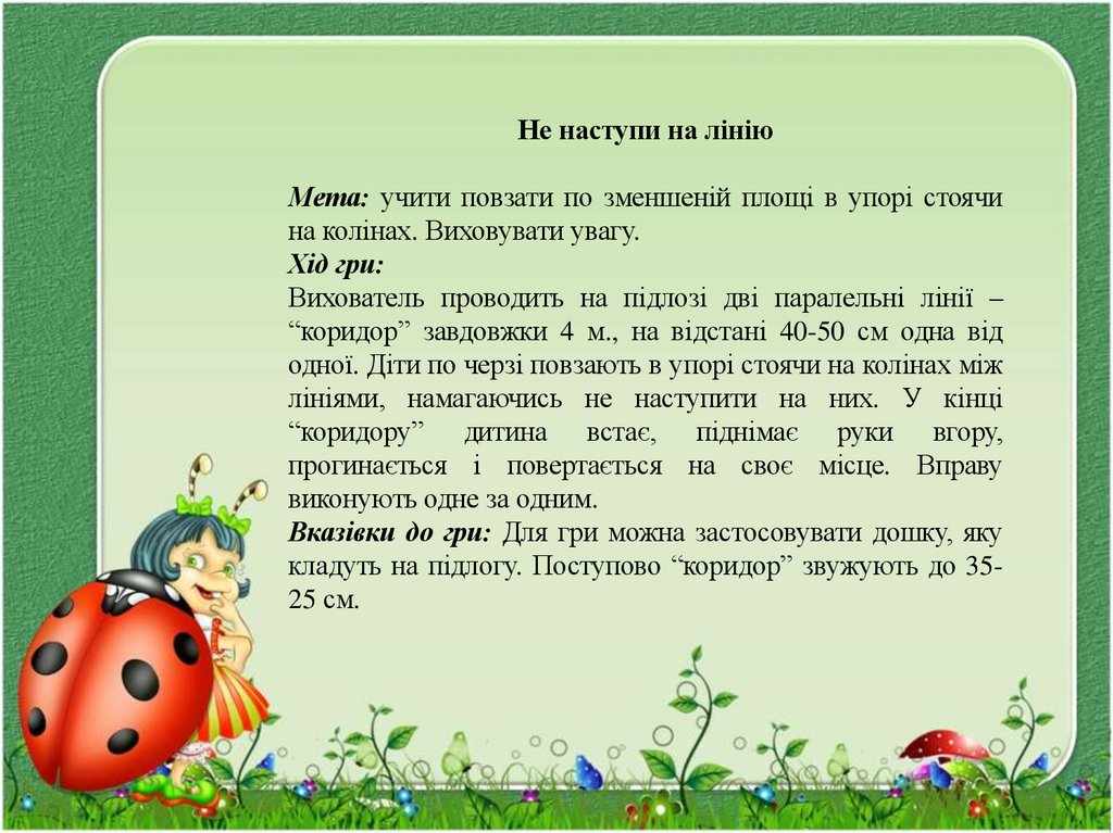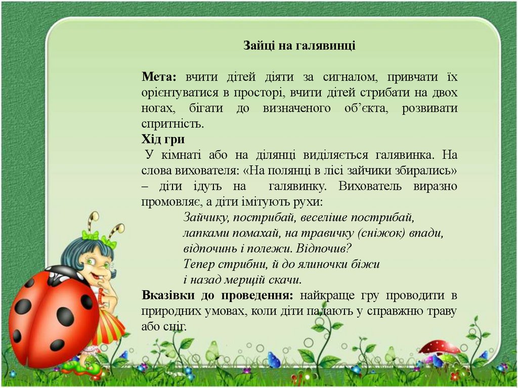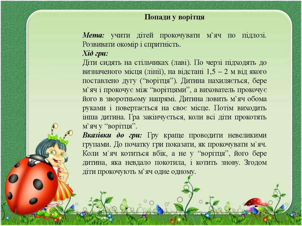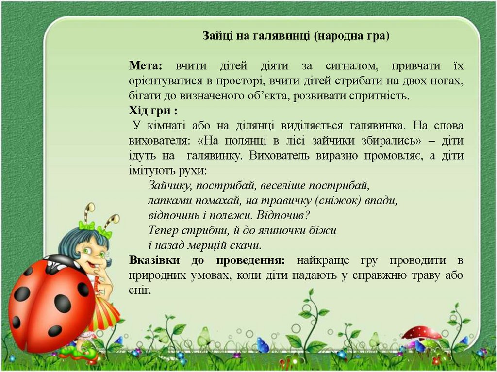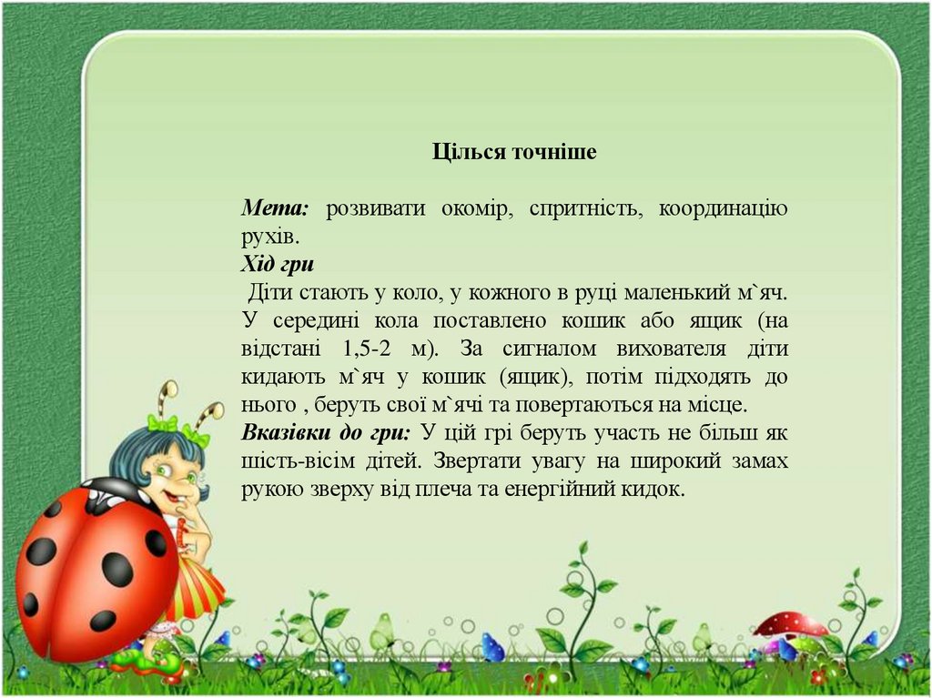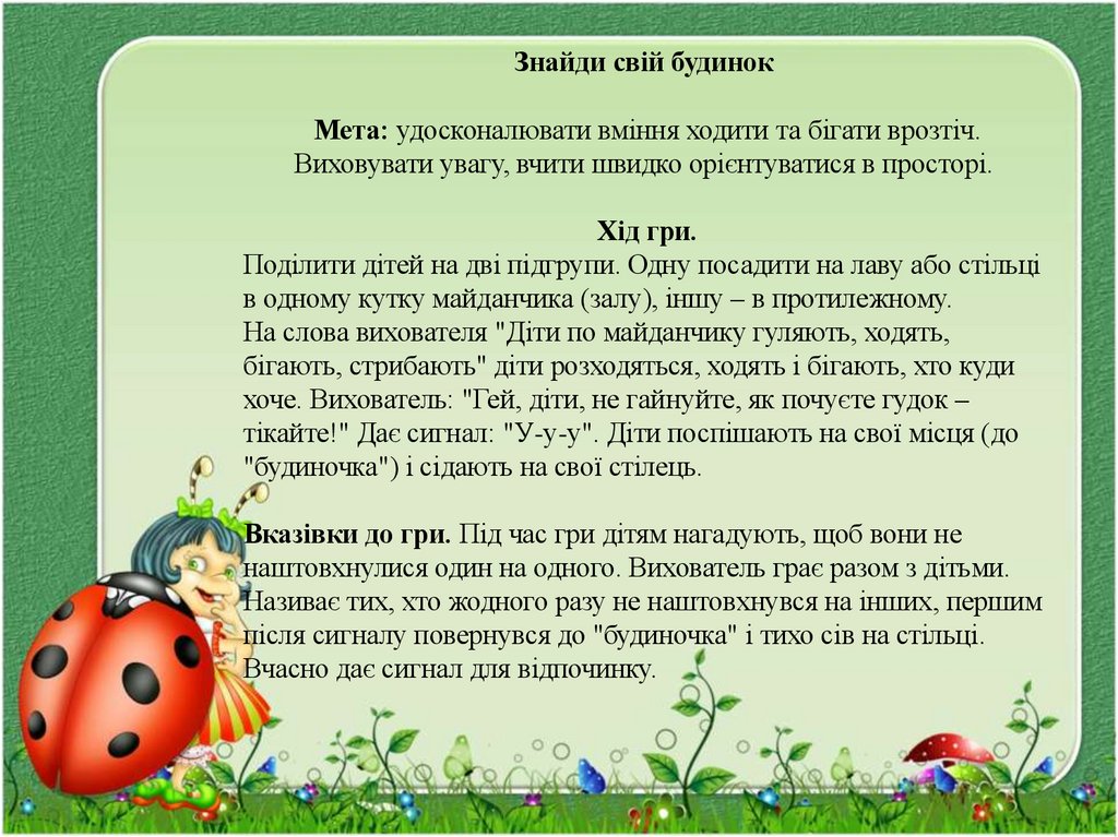 Вказівки до проведення: спочатку гру доцільно проводити з 4-6