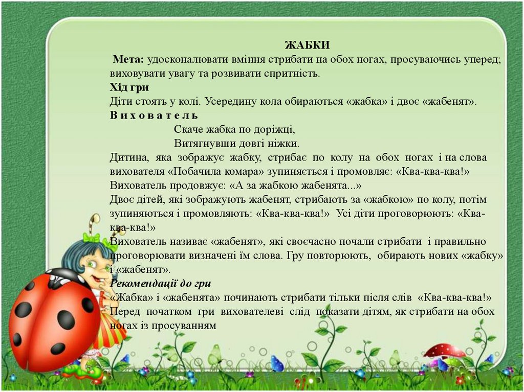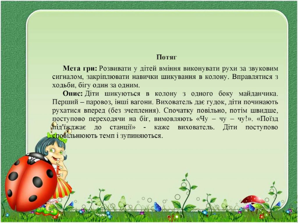 • Ігри з ходьбою та бігом• Ігри з стрибками