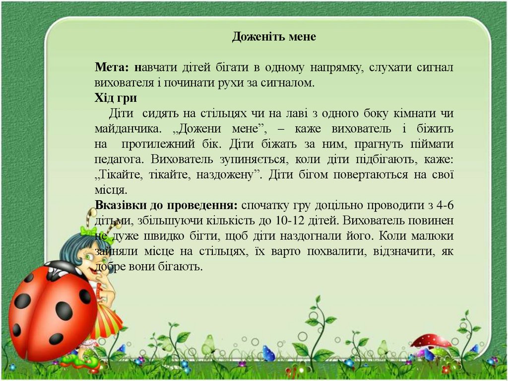 Доженіть менеМета: навчати дітей бігати в одному напрямку, слухати сигнал