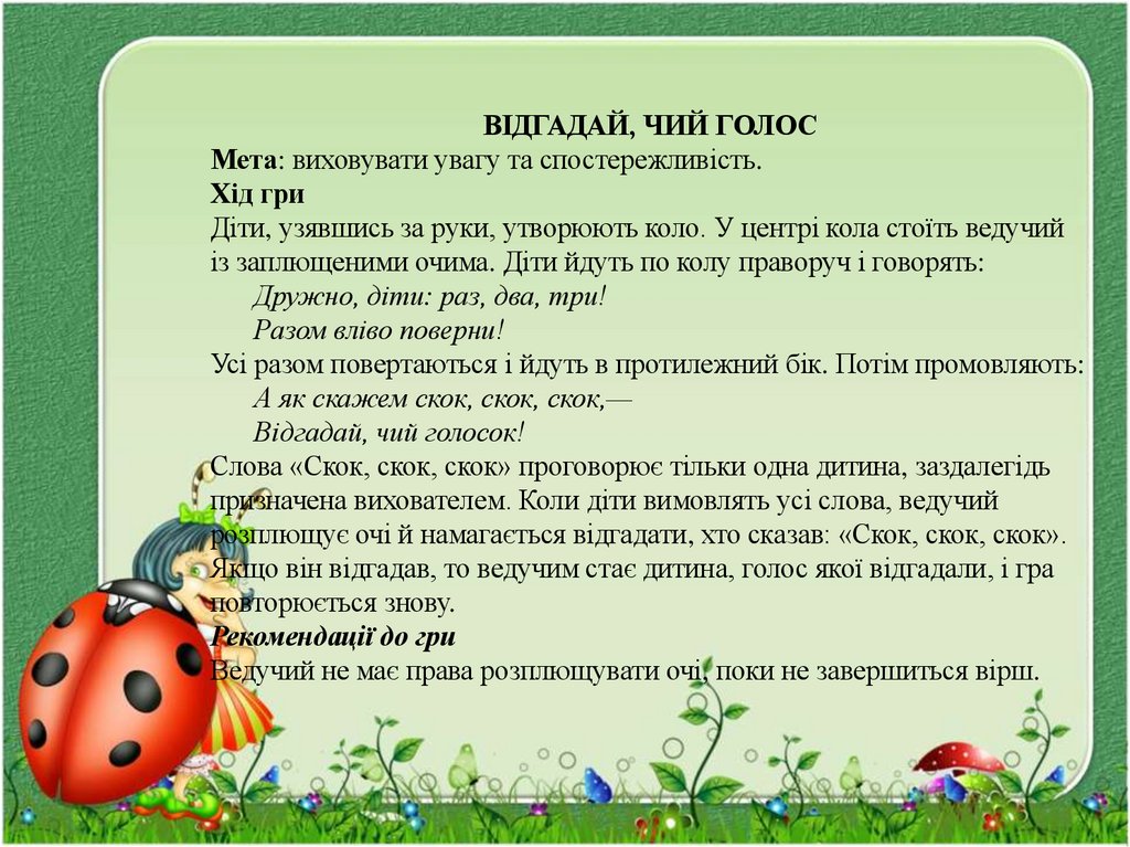 ВІДГАДАЙ, ЧИЙ ГОЛОСМета: виховувати увагу та спостережливість.