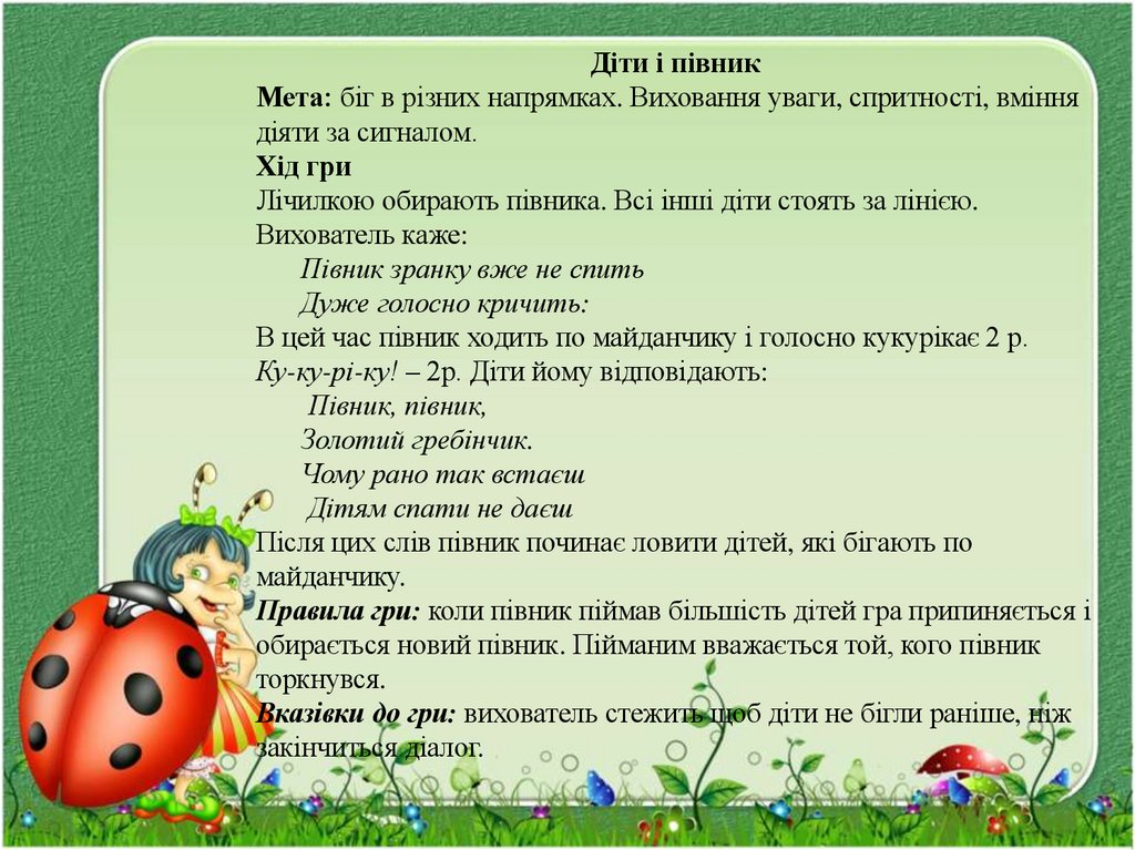 Правила гри: коли півник піймав більшість дітей гра припиняється і