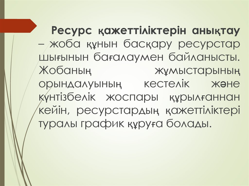 Ресурс қажеттіліктерін анықтау– жоба құнын басқару ресурстар
