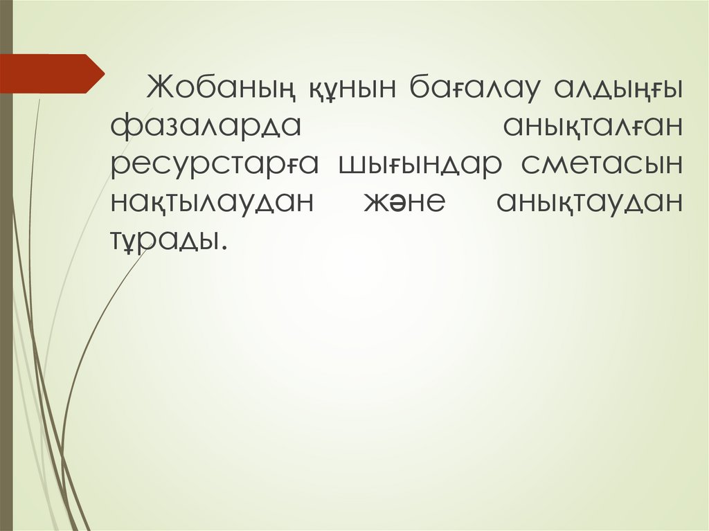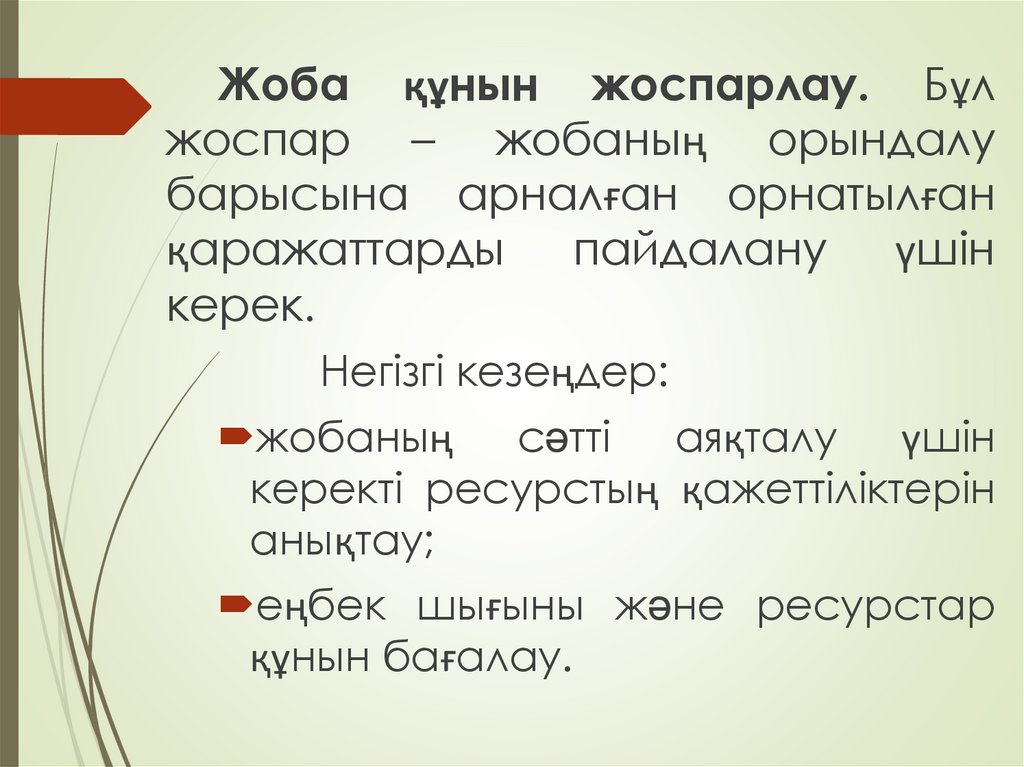 Жоба құнын жоспарлау. Бұлжоспар – жобаның орындалу
