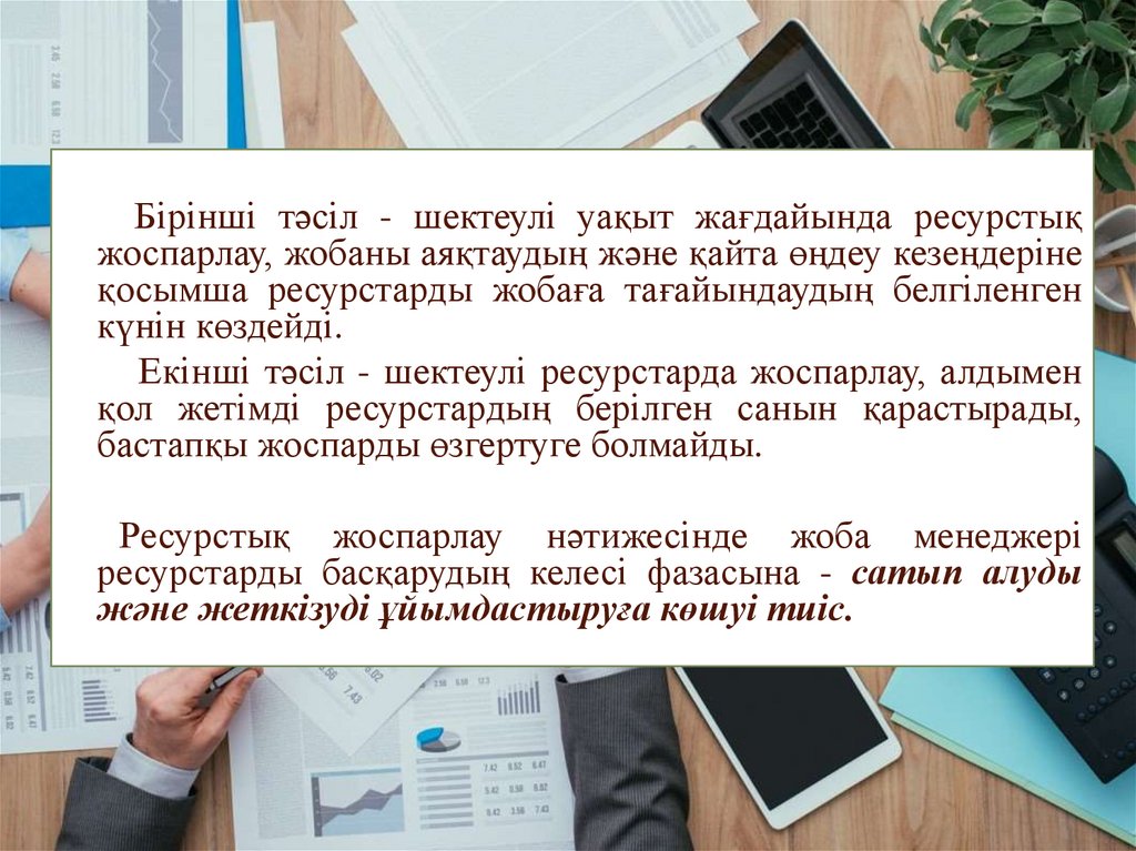 18. Жоба ресурстарын жоспарлаудың негізгі принциптері