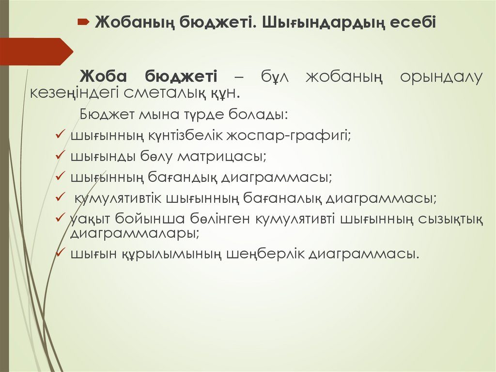 Жобаның бюджеті. Шығындардың есебіЖоба бюджеті –