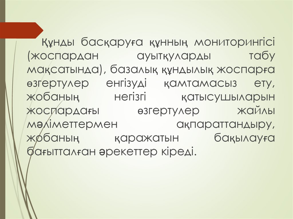 Құнды басқаруға құнның мониторингісі(жоспардан