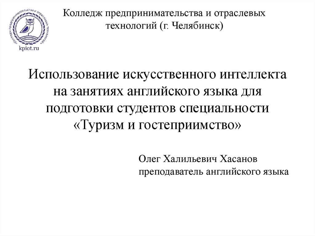 1. Использование искусственного интеллекта на занятиях английского языка для подготовки студентов специальности «Туризм и