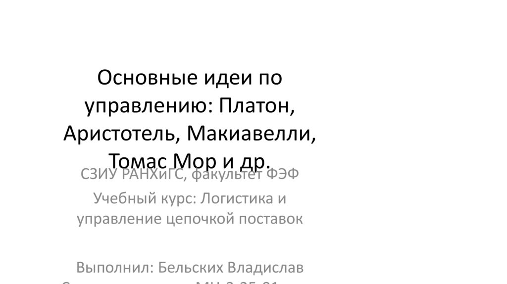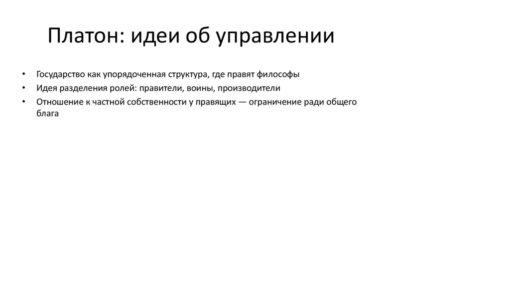 Платон: идеи об управленииГосударство как упорядоченная структура, где правят философы