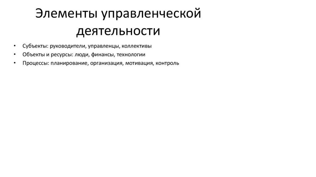 3) Назовите три основных элемента управленческой деятельности. — (Ответ: