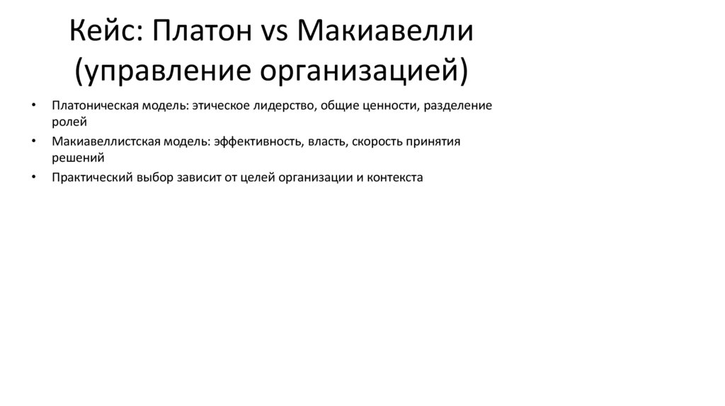 2) Чем отличается макиавеллистский подход от платонического? — (Ответ: акцент на