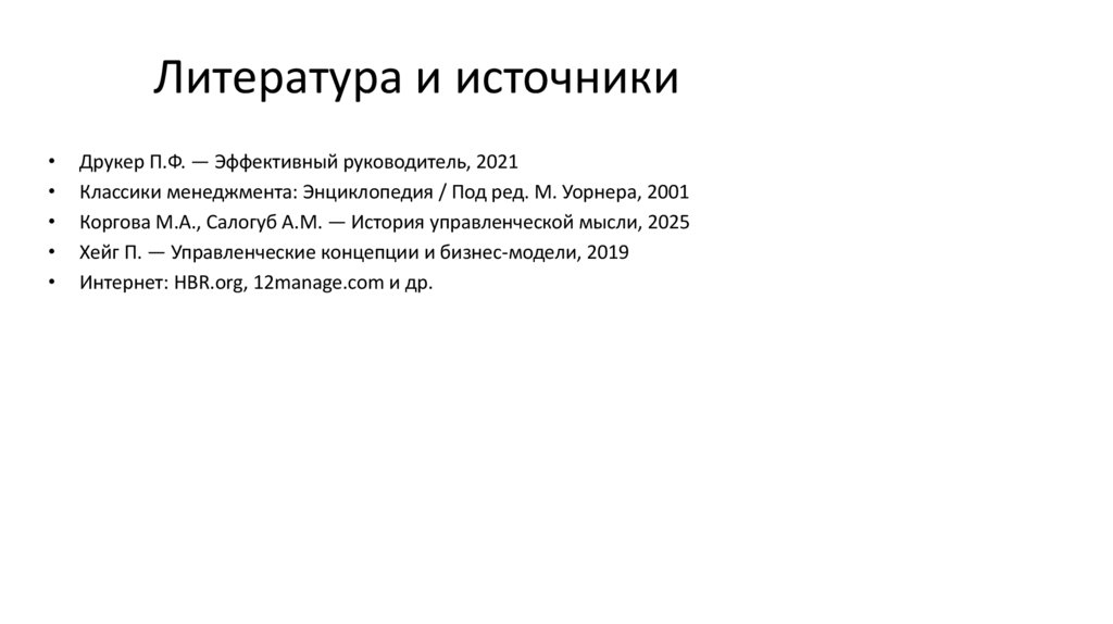 Литература и источникиДрукер П.Ф. — Эффективный руководитель, 2021