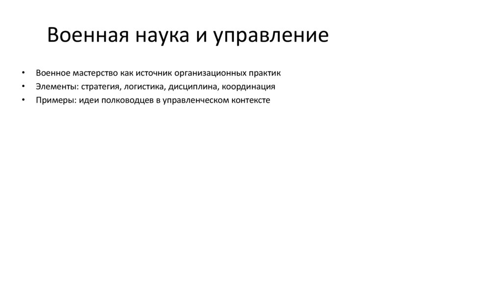 4) В чём вклад военной науки в менеджмент? — (Ответ: стратегия, логистика,