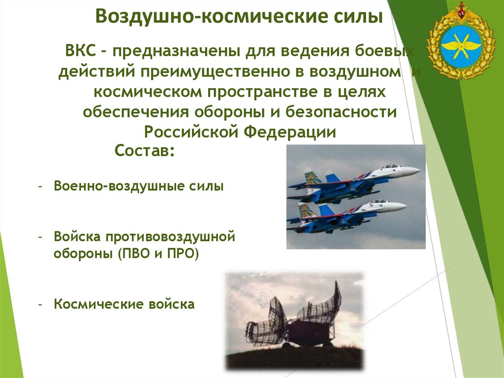 Воздушно-космические силыВКС – предназначены для ведения боевых