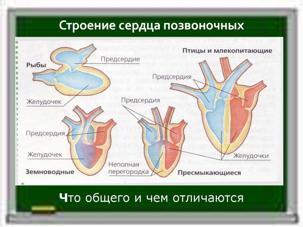 Строение сердца позвоночныхЧто общего и чем отличаются