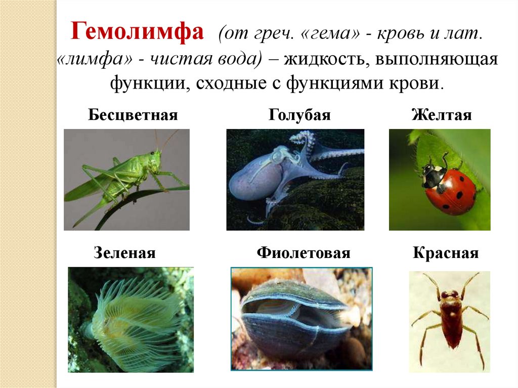 Гемолимфа (от греч. «гема» - кровь и лат.«лимфа» - чистая вода) – жидкость, выполняющая