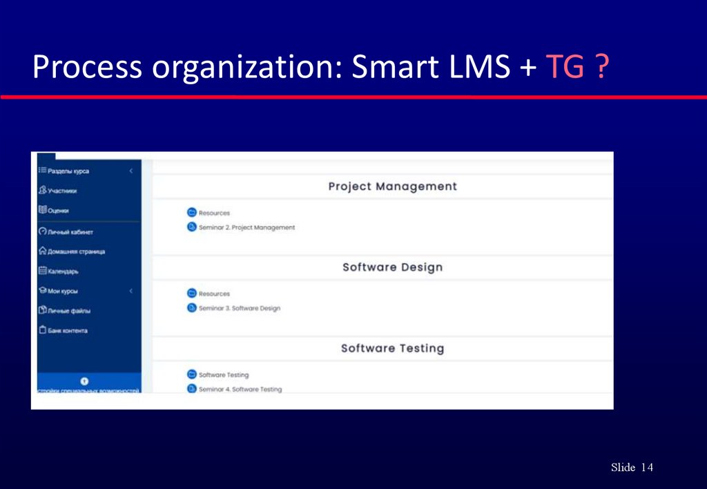 Process organization: Smart LMS + TG ?Slide 14