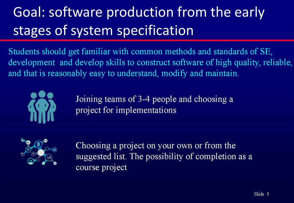 Students should get familiar with common methods and standards of SE,