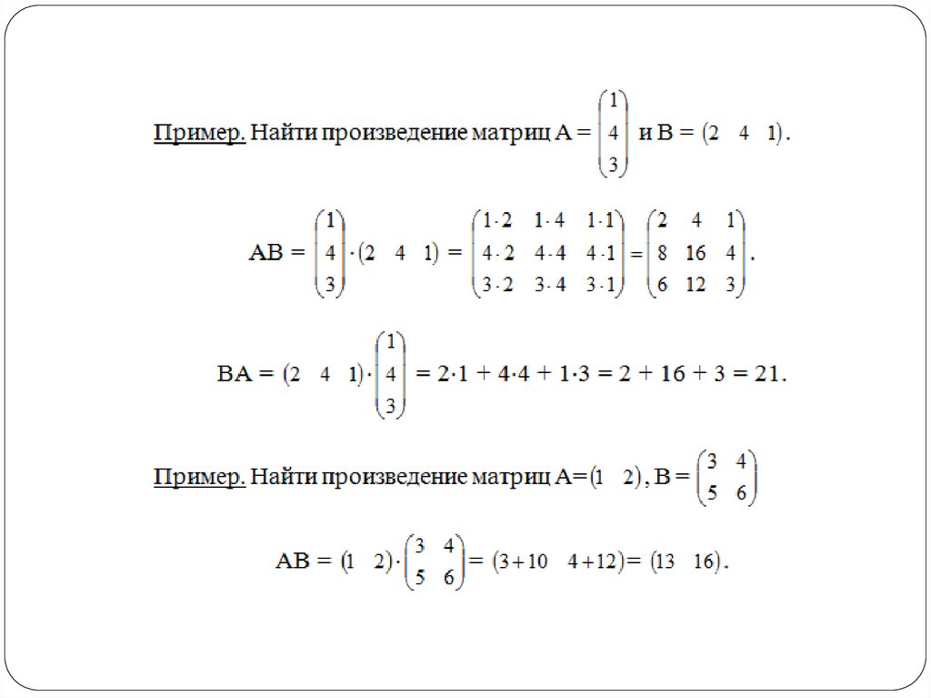 Произведением матриц называется матрица,элементы которой могут быть вычислены по