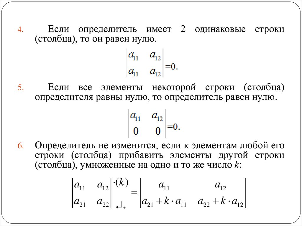 При перестановке местами 2-х строк (2-х столбцов) знак