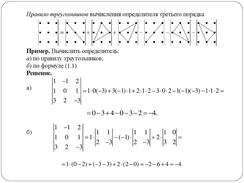 Правило треугольников вычисления определителя третьего порядкаПример. Вычислить определитель: