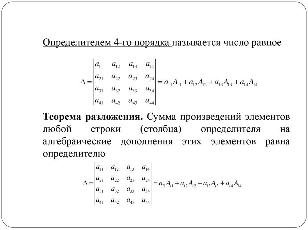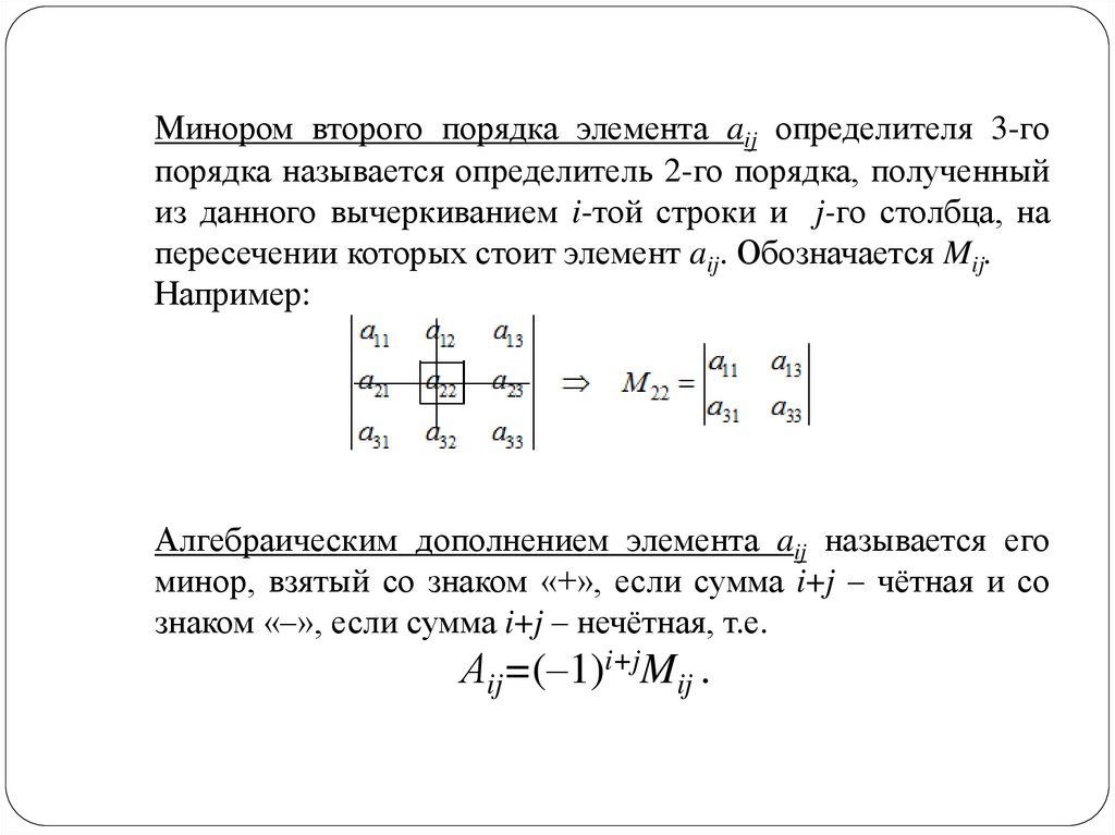 минор, взятый со знаком «+», если сумма i+j – чётная и со