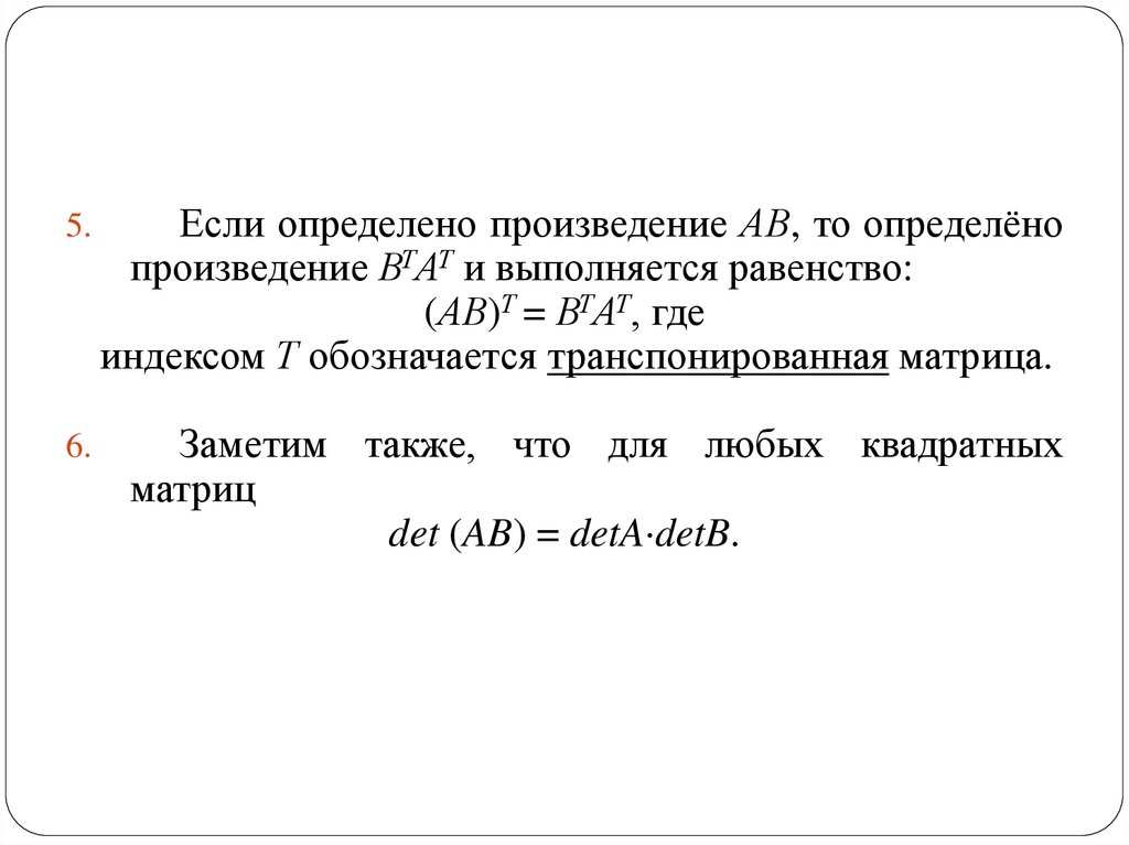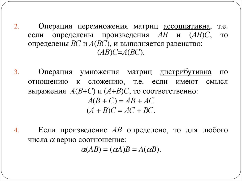 1.Умножение матриц не коммутативно, т.е. АВ ВА даже