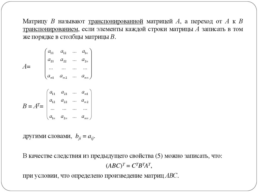 Матрицей размера m n, где m ‒ число строк, n ‒ число столбцов,называется таблица чисел, расположенных в определенном порядке.