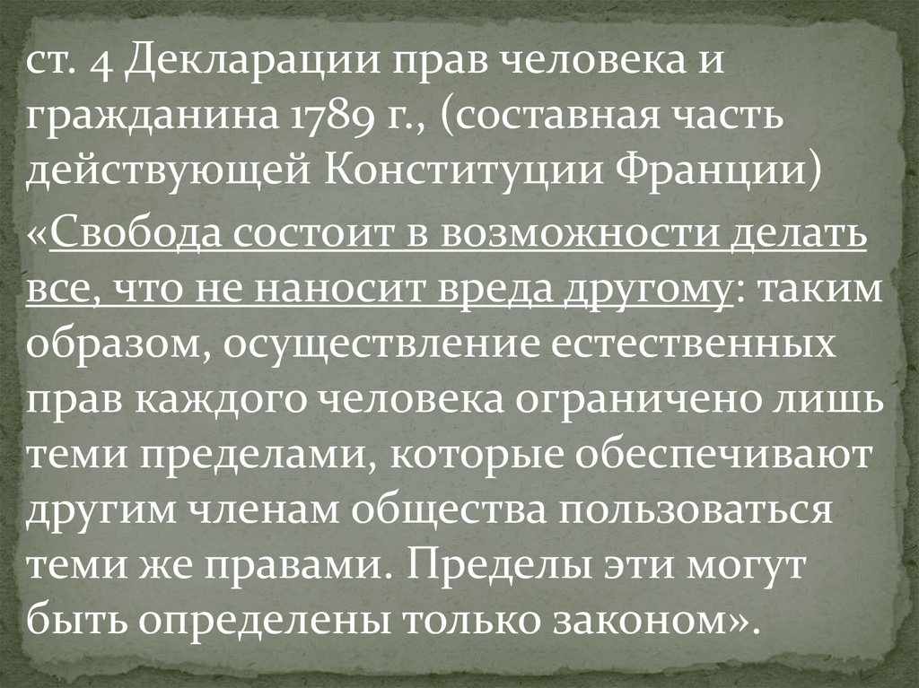 определяется международноправовыми актами о правах человекаи правовыми конституциями