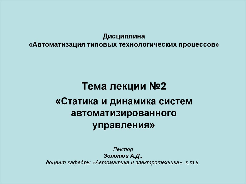 1. Дисциплина «Автоматизация типовых технологических процессов»